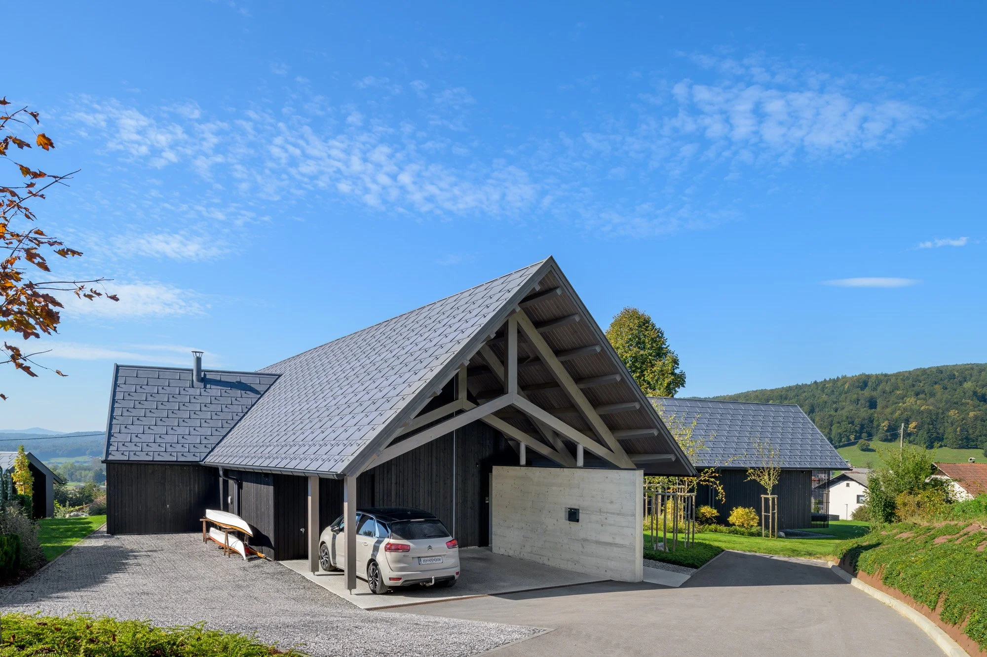 As a result, the house now features a striking charcoal-black Shou Sugi Ban façade, while its large interior volumes are clad entirely in rough wooden planks. A standout element of the interior is a massive, colorful rammed earth wall that serves both as a backdrop for the living room and as thermal mass. Another unique feature is the bathroom, affectionately dubbed “The Poo Chapel,” which resembles a house within a house. And while some people display their cherished vintage cars, here, one can admire a different kind of classic – a charming, old but meticulously restored wooden sailing boat that the owners still use every summer.